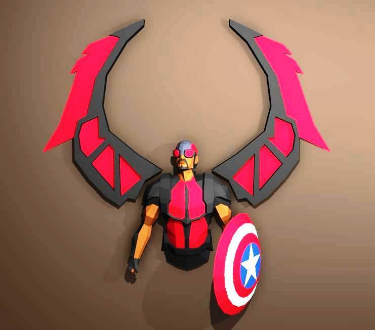 Falcon Papercraft , PDF Template, DIY 3d Model, FanArt, Paper Sculpture, Low Poly, Pepakura, Marvel Cómics, Craft, Manualidad, Arte de Papel