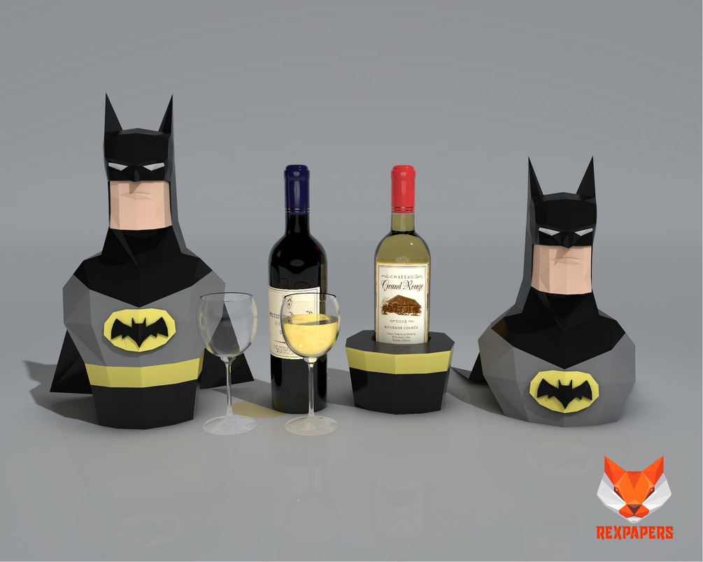 Caja Para Vino Batma , PDF Template, DIY 3d Model, FanArt, Paper Sculpture, Low Poly, Pepakura, Craft, Manualidad, Arte de Papel